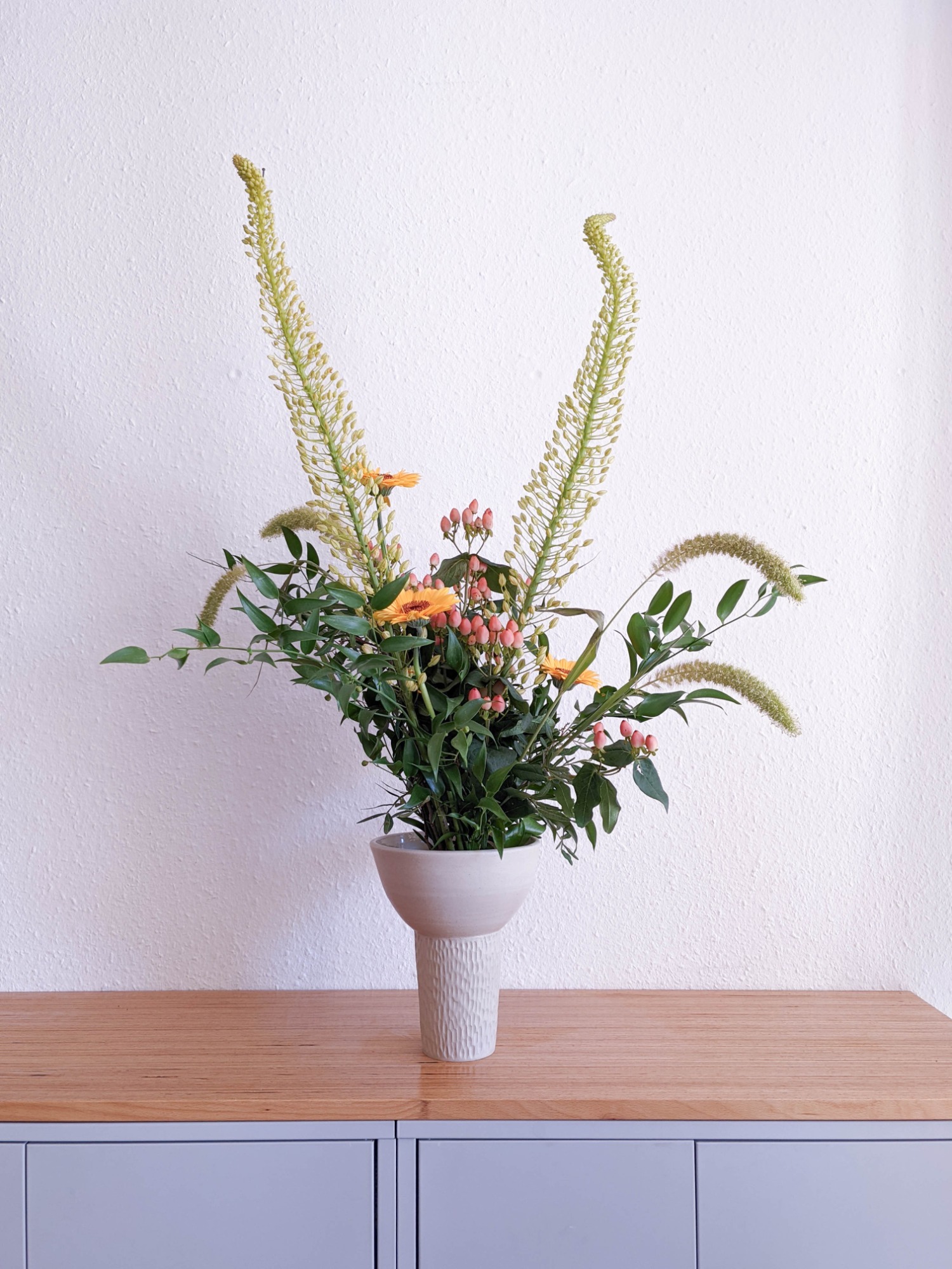 Meine Keramik wird von Hand getöpfert, gestaltet, glasiert und zweifach gebrannt zu Steinzeug-Keramik. Steinzeug-Keramik ist besonders widerstandsfähig und durch die hohe Temperatur während des Glattbrands auch ohne Glasur wasserfest.